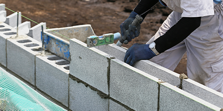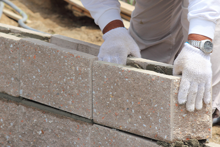 必要な箇所へブロックをモルタルで接着させて積み上げる施工のことです。