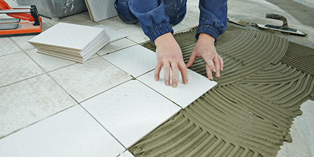 設計図に従って床や壁に指定のタイルを張りつける工事です。タイル工事では浴室やキッチンなどの部分的なタイル工事から、外装全面にまで及ぶ大規模なタイル工事まで幅広く活躍します。